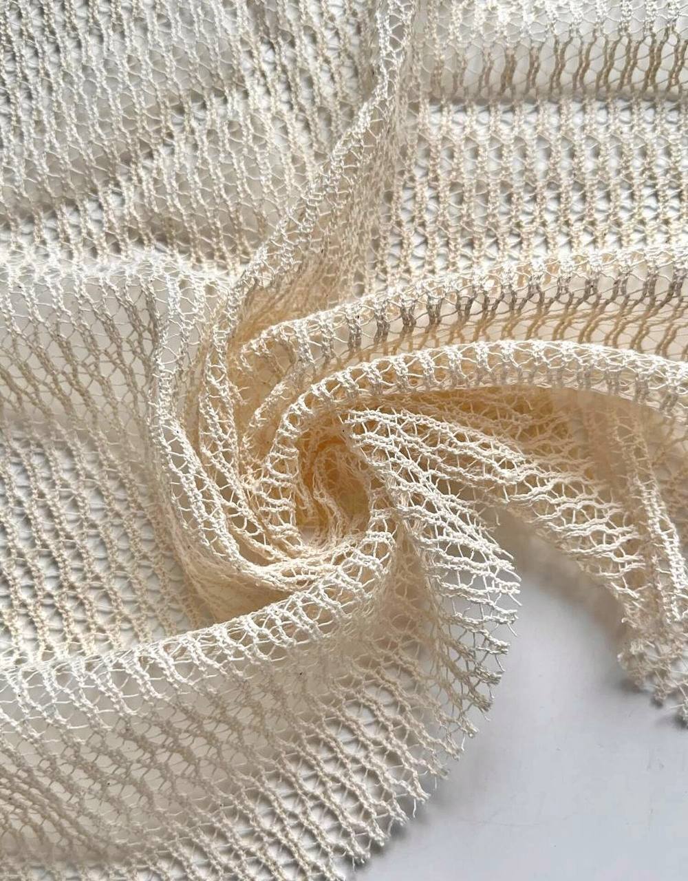 ХАРАКТЕРИСТИКИ: Хлопковое кружево кроше Рисунок в виде мелкоузорчатого переплетения вдоль кромки Полотно мягкое, приятное в руках, имеет натуральный оттенок хлопка ЧТО ШЬЁМ: Эта ткань – самый горячий тренд летнего сезона Из нее можно шить юбки, платья, брюки, лонги Так как ткань тянется, можно шить изделия по фигуре УХОД ЗА ИЗДЕЛИЕМ: • стираем на 30-40 градусах с жидким моющим средством • можно не утюжить