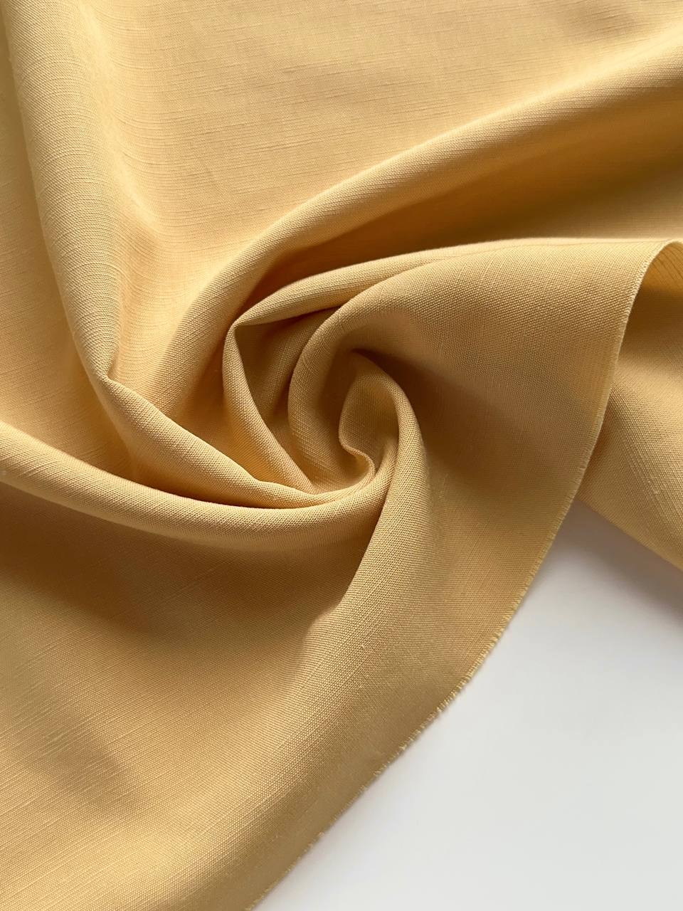 Смесовый лен с вискозой - мягкая и пластичная ткань с хорошим переплетением нитей (не рыхлая) Мнется, но хорошо разглаживается Для светлых оттенков может потребоваться подкладочная ткань на подол Можно использовать хлопковый батист Не колется, но у всех разный порог чувствительности, учитывайте это Не тянется, так как в составе нет эластичных волокон Слегка держит форму Лен с вискозой - идеальная ткань для изделий на лето или для жаркого климата Благодаря натуральному составу, в изделии из этого льна будет комфортно как летом в жару, так и в прохладное время ЧТО ШЬЕМ Подойдет на любое летнее изделие Платья, юбки, сарафаны, шорты, брюки, туники, рубашки, топы, костюмы Изделия будут легкие, воздушные. Слегка будут держать форму, например, объемные рукава Выбирайте модели свободного кроя с достаточной свободой, так как ткань не тянется Для пошива используем универсальные нитки madeira 400м ДЕКАТИРОВКА • Замачиваем ткань в теплой воде 30 градусов (для стабилизации цвета можно добавить 1 столовую ложку уксуса на литр воды) отжимаем, но не выкручиваем • Сушим на горизонтальной поверхности, не на веревке и без прищепок. Не допускаем полного высыхания полотна • Утюжим слегка влажным с изнанки по долевой на режиме лен Правильно проведенная декатировка стабилизирует нити ткани (восстанавливает их первоначальное положение), также происходит усадка ткани Усадка 6-7% УХОД ЗА ИЗДЕЛИЕМ • Стираем на деликатном режиме, при температуре 30 градусов или ручная стирка. Используем жидкое средство для цветных вещей. Отжим до 800 оборотов или выжимаем руками (не выкручиваем) • Встряхиваем изделие и сушим желательно в горизонтальном положении. Если сушим вертикально, то не используем прищепки • Не допуская полного высыхания изделия, утюжим его в режиме лен