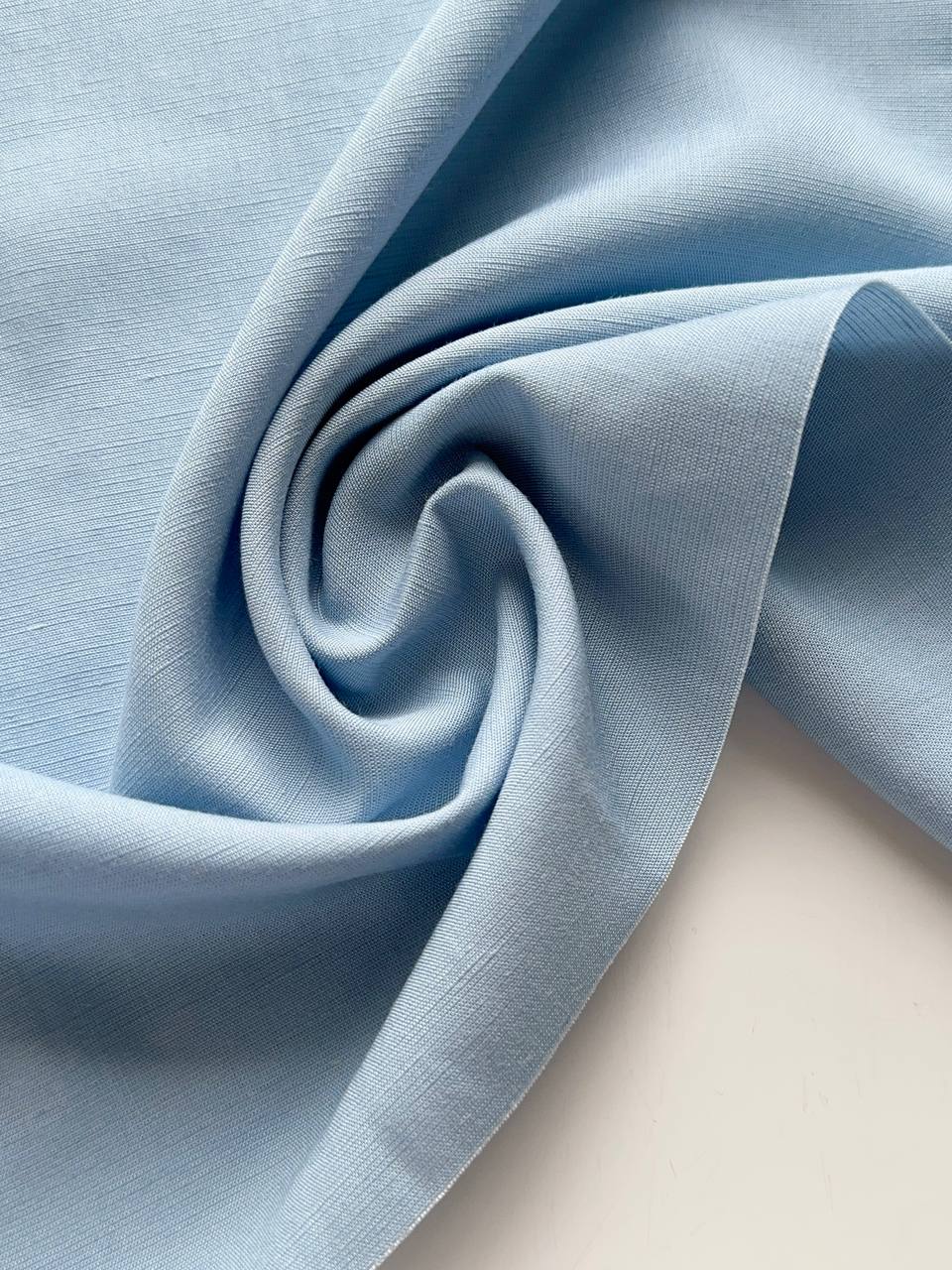 Смесовый лен с вискозой - мягкая и пластичная ткань с хорошим переплетением нитей (не рыхлая) Мнется, но хорошо разглаживается Для светлых оттенков может потребоваться подкладочная ткань на подол Можно использовать хлопковый батист Не колется, но у всех разный порог чувствительности, учитывайте это Не тянется, так как в составе нет эластичных волокон Слегка держит форму Лен с вискозой - идеальная ткань для изделий на лето или для жаркого климата Благодаря натуральному составу, в изделии из этого льна будет комфортно как летом в жару, так и в прохладное время ЧТО ШЬЕМ Подойдет на любое летнее изделие Платья, юбки, сарафаны, шорты, брюки, туники, рубашки, топы, костюмы Изделия будут легкие, воздушные. Слегка будут держать форму, например, объемные рукава Выбирайте модели свободного кроя с достаточной свободой, так как ткань не тянется Для пошива используем универсальные нитки madeira 400м ДЕКАТИРОВКА • Замачиваем ткань в теплой воде 30 градусов (для стабилизации цвета можно добавить 1 столовую ложку уксуса на литр воды) отжимаем, но не выкручиваем • Сушим на горизонтальной поверхности, не на веревке и без прищепок. Не допускаем полного высыхания полотна • Утюжим слегка влажным с изнанки по долевой на режиме лен Правильно проведенная декатировка стабилизирует нити ткани (восстанавливает их первоначальное положение), также происходит усадка ткани Усадка 6-7% УХОД ЗА ИЗДЕЛИЕМ • Стираем на деликатном режиме, при температуре 30 градусов или ручная стирка. Используем жидкое средство для цветных вещей. Отжим до 800 оборотов или выжимаем руками (не выкручиваем) • Встряхиваем изделие и сушим желательно в горизонтальном положении. Если сушим вертикально, то не используем прищепки • Не допуская полного высыхания изделия, утюжим его в режиме лен