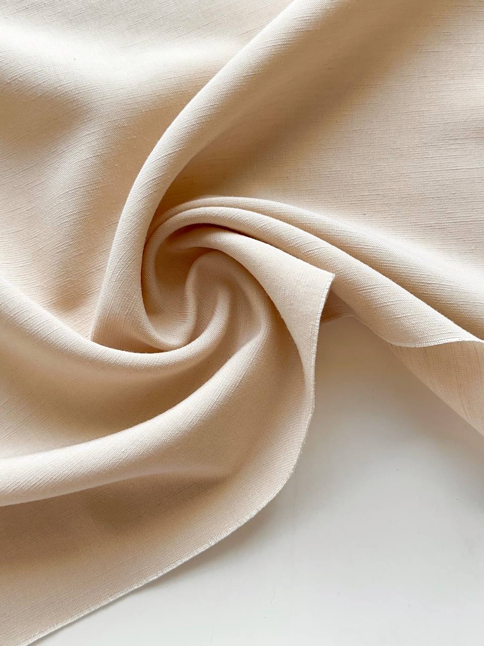 Смесовый лен с вискозой - мягкая и пластичная ткань с хорошим переплетением нитей (не рыхлая) Мнется, но хорошо разглаживается Для светлых оттенков может потребоваться подкладочная ткань на подол Можно использовать хлопковый батист Не колется, но у всех разный порог чувствительности, учитывайте это Не тянется, так как в составе нет эластичных волокон Слегка держит форму Лен с вискозой - идеальная ткань для изделий на лето или для жаркого климата Благодаря натуральному составу, в изделии из этого льна будет комфортно как летом в жару, так и в прохладное время ЧТО ШЬЕМ Подойдет на любое летнее изделие Платья, юбки, сарафаны, шорты, брюки, туники, рубашки, топы, костюмы Изделия будут легкие, воздушные. Слегка будут держать форму, например, объемные рукава Выбирайте модели свободного кроя с достаточной свободой, так как ткань не тянется Для пошива используем универсальные нитки madeira 400м ДЕКАТИРОВКА • Замачиваем ткань в теплой воде 30 градусов (для стабилизации цвета можно добавить 1 столовую ложку уксуса на литр воды) отжимаем, но не выкручиваем • Сушим на горизонтальной поверхности, не на веревке и без прищепок. Не допускаем полного высыхания полотна • Утюжим слегка влажным с изнанки по долевой на режиме лен Правильно проведенная декатировка стабилизирует нити ткани (восстанавливает их первоначальное положение), также происходит усадка ткани Усадка 6-7% УХОД ЗА ИЗДЕЛИЕМ • Стираем на деликатном режиме, при температуре 30 градусов или ручная стирка. Используем жидкое средство для цветных вещей. Отжим до 800 оборотов или выжимаем руками (не выкручиваем) • Встряхиваем изделие и сушим желательно в горизонтальном положении. Если сушим вертикально, то не используем прищепки • Не допуская полного высыхания изделия, утюжим его в режиме лен
