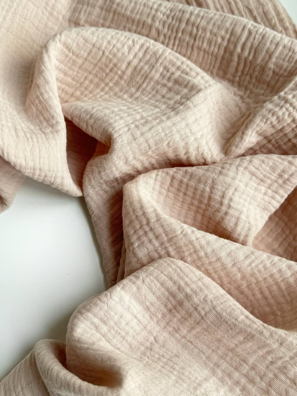 ХАРАКТЕРИСТИКИ: ✅ состоит из 100% хлопка ✅ благодаря отличному составу, ткань можно использовать для изделий 1 слоя, в том числе и для людей с чувствительной кожей и для наших малышей ✅ ткань очень мягкая и приятная к телу ✅ отличная гигроскопичность, воздухопроницаемость и теплопроводность. В изделиях очень комфортно даже в жару ✅ хорошая износостойкость! При правильном уходе изделие долго сохраняет первоначальный внешний вид ✅ не электризуется ✅ не сминаем ✅ светлые оттенки слегка просвечивают ✅ двухслойный ✅ ткань имеет крэш-эффект На фото в карусели можно разглядеть индивидуальность этой ткани ЧТО ШЬЁМ: - платья, сарафаны, юбки, брюки - рубашки/топы - изделия для лета - домашнюю одежду - детскую одежду и пеленки КАК УХАЖИВАЕМ: ✅стираем на деликатном режиме, лучше руками при температуре 40 градусов . Легкий отжим, не выкручиваем ✅утюжим в режиме хлопок также изделия из муслина можно просто хорошо встряхнуть и не гладить