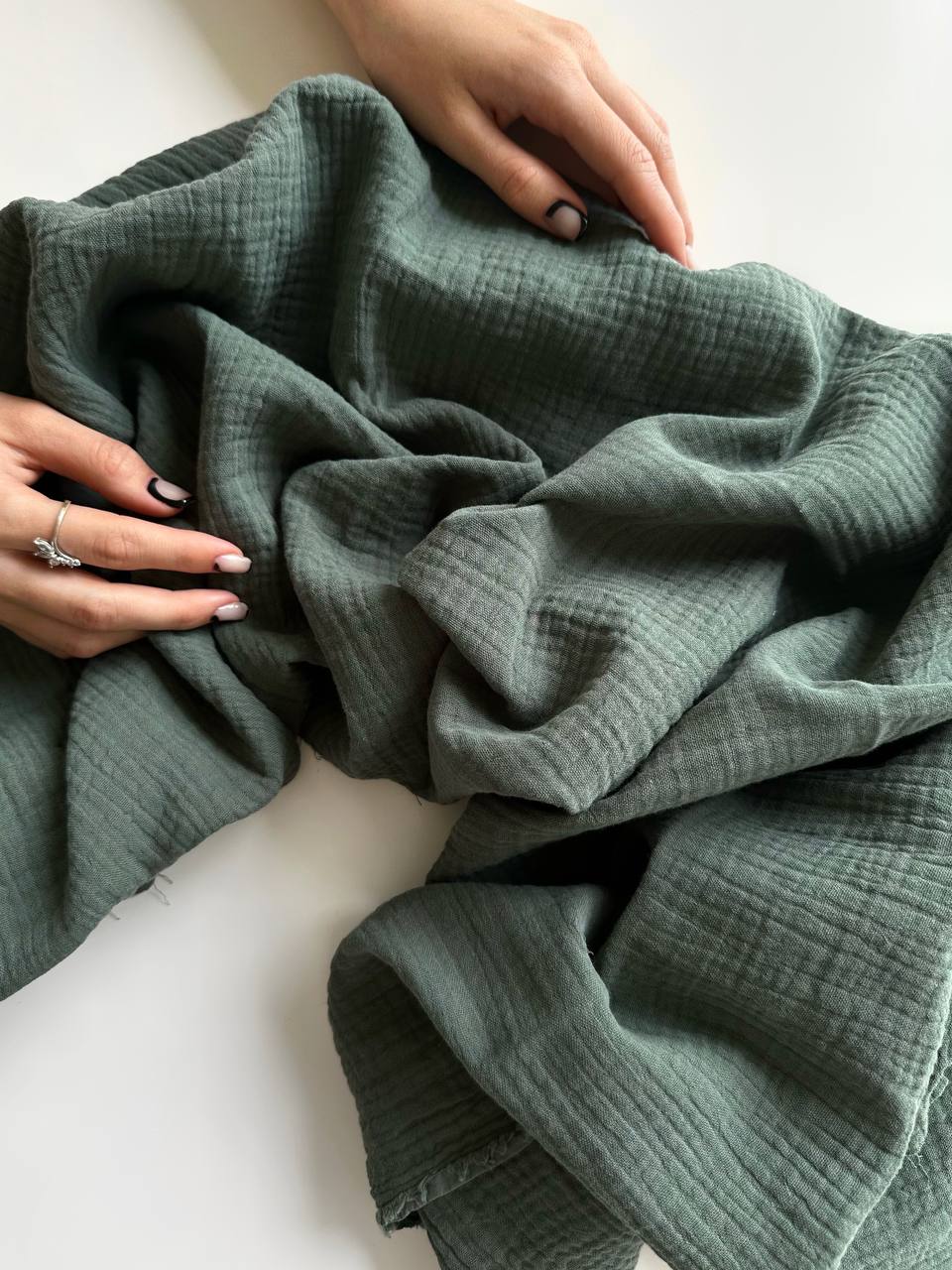 ХАРАКТЕРИСТИКИ: ✅ состоит из 100% хлопка ✅ благодаря отличному составу, ткань можно использовать для изделий 1 слоя, в том числе и для людей с чувствительной кожей и для наших малышей ✅ ткань очень мягкая и приятная к телу ✅ отличная гигроскопичность, воздухопроницаемость и теплопроводность. В изделиях очень комфортно даже в жару ✅ хорошая износостойкость! При правильном уходе изделие долго сохраняет первоначальный внешний вид ✅ не электризуется ✅ не сминаем ✅ светлые оттенки слегка просвечивают ✅ двухслойный ✅ ткань имеет крэш-эффект На фото в карусели можно разглядеть индивидуальность этой ткани ЧТО ШЬЁМ: - платья, сарафаны, юбки, брюки - рубашки/топы - изделия для лета - домашнюю одежду - детскую одежду и пеленки КАК УХАЖИВАЕМ: ✅стираем на деликатном режиме, лучше руками при температуре 40 градусов . Легкий отжим, не выкручиваем ✅утюжим в режиме хлопок также изделия из муслина можно просто хорошо встряхнуть и не гладить
