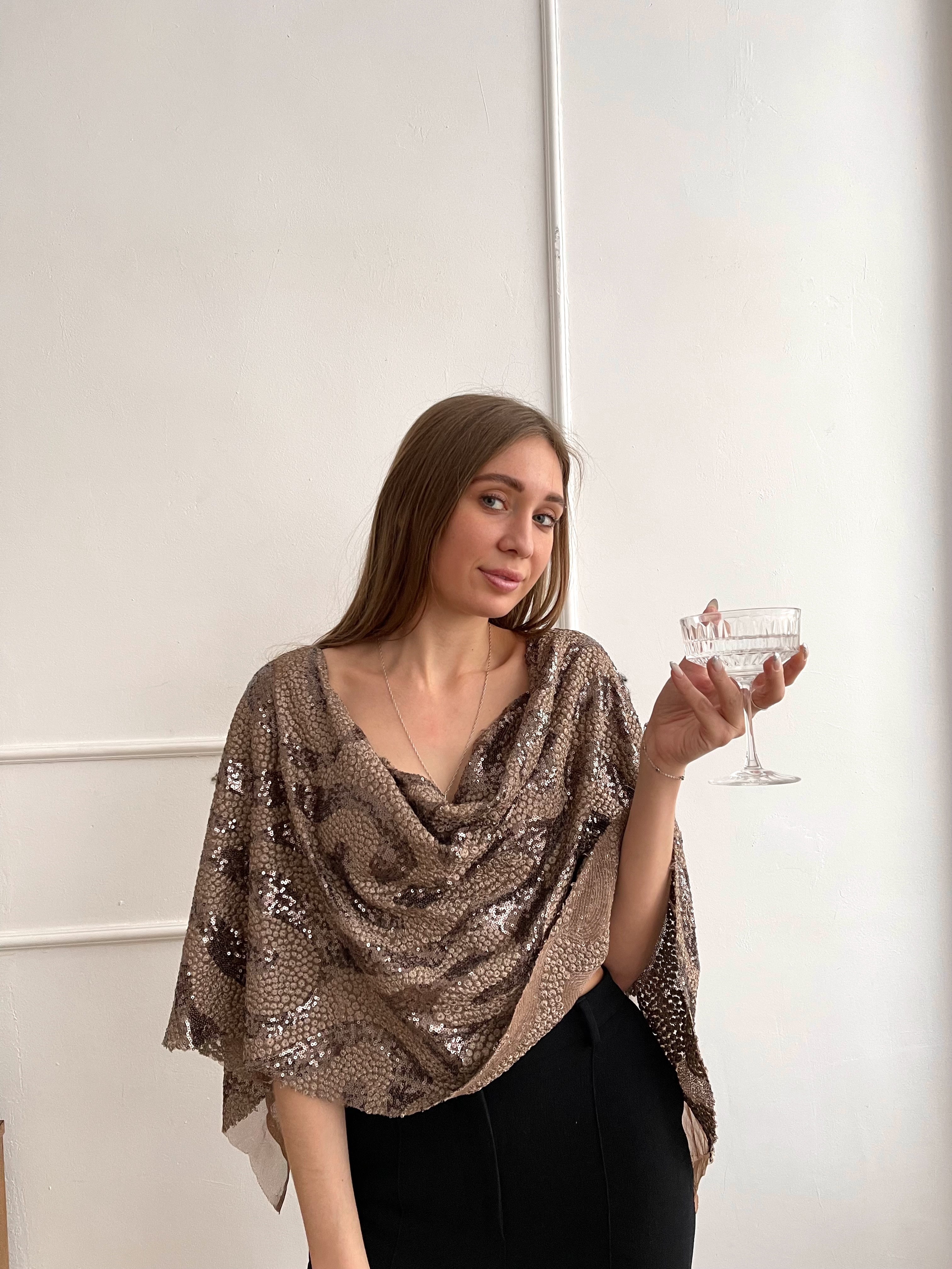 Пайетки на сетке Тауп