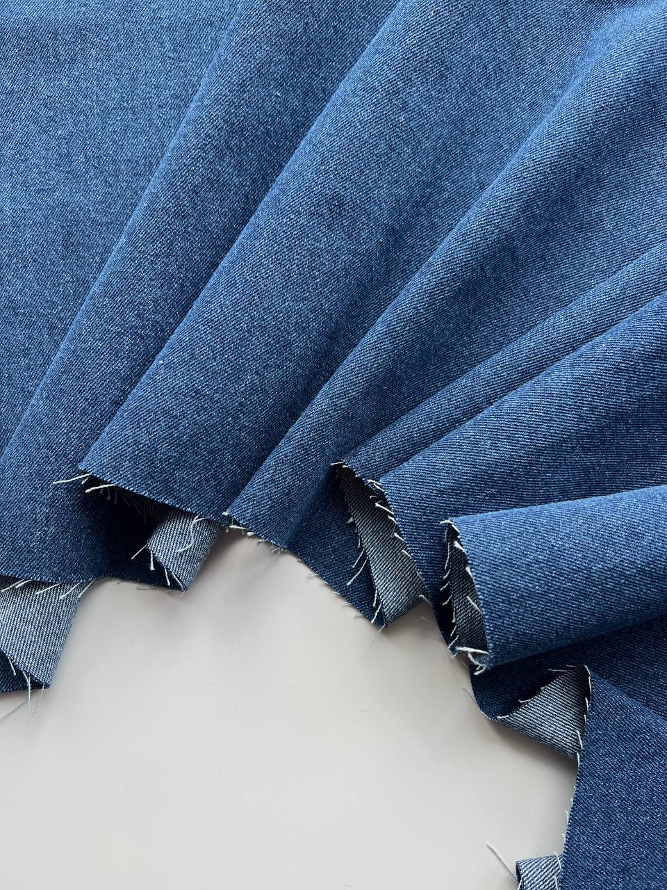 ХАРАКТЕРИСТИКИ: Классический деним средней плотности идеально подойдет на базовый джинсовый гардероб 100% хлопок, не тянется, держит форму ЧТО ШЬЕМ: Джинсы, юбки, платья, джинсовки и джинсовые рубашки, шорты Выбираем модели с достаточной свободой облегания, так как ткань не тянется Для отстрочки можно использовать нитки Gutermann На джинсы и шорты можно использовать молнии для денима и металлические пуговицы ДЕКАТИРОВКА: Перед пошивом ткань необходимо декатировать Замочить отрез в теплой воде 30-40 градусов. Далее высушить в горизонтальном положении Слегка влажную ткань проутюжить на режиме хлопок Рекомендуем перед началом работы провести тест на небольшом кусочке, чтобы проверить настройки вашего утюга или парогенератора КАК УХАЖИВАЕМ: Стираем на режиме 40 градусов, используем жидкое моющее средство (агрессивные порошки и отбеливатель не используем) отжим не более 800 оборотов Сушим в расправленном виде, вдали от отопительных приборов и яркого солнца Утюжим слегка влажным на режиме хлопок