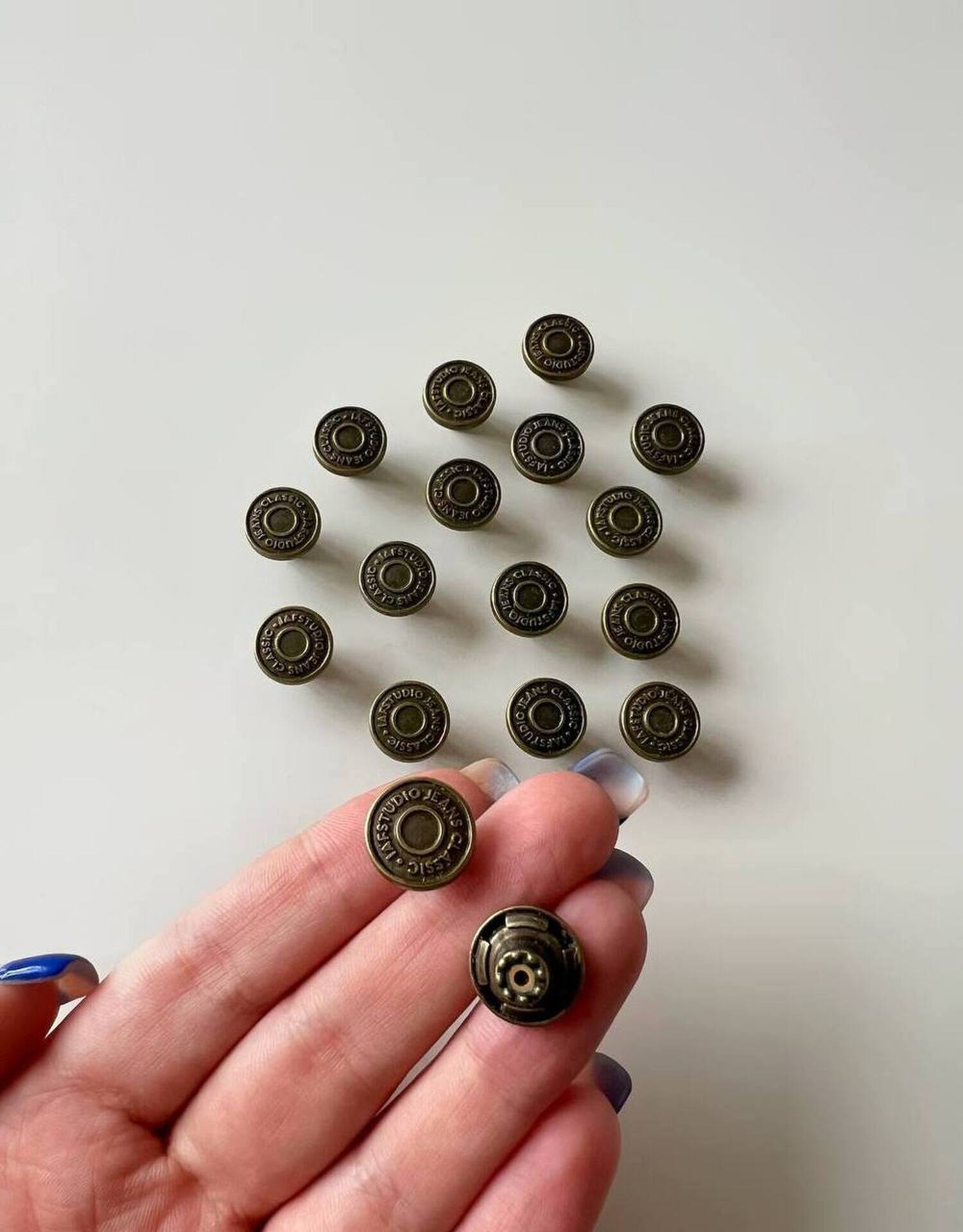 В комплекте идет 100 пуговиц и 100 гвоздиков
