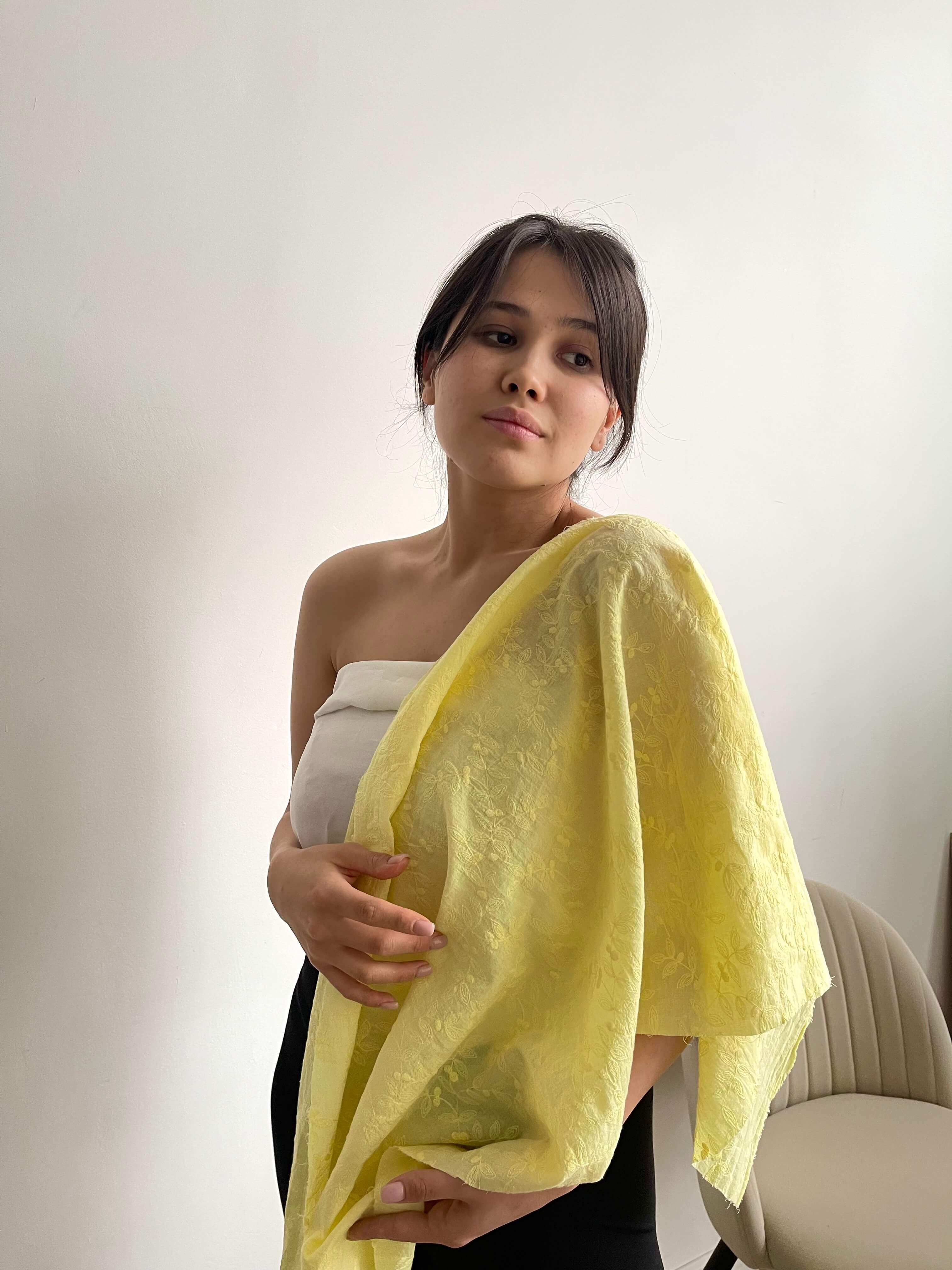 ХАРАКТЕРИСТИКИ: 100% хлопок, который имеет вышивку хлопковой нитью в тон. Ткань легкая, воздущная, слегка просвечивает и не мнется. Без фестонов. Узор веточки симметричный, не требует подгона. Ткань с эффектом крэш, приятная на ощупь. ЧТО ШЬЁМ: Шитье - идеальная ткань на летние наряды и изделия для отпуска. Так как это 100% хлопок, в изделиях очень комфортно при высоких темературах. Подойдет для пошива платьев, сарафанов, юбок, топов, туник, шорт и костюмов в пижамном стиле Может потребоваться подкладка КАК УХАЖИВАЕМ: • Стираем на 30-40 градусах с добавлением жидкого моющего средства или ручная стирка. Отжим не больше 800 оборотов • Сушим в расправленном виде вдали от отопительных приборов или яркого солнца • Утюжим в режиме хлопок слегка влажное изделие, по возможности с изнаночной стороны
