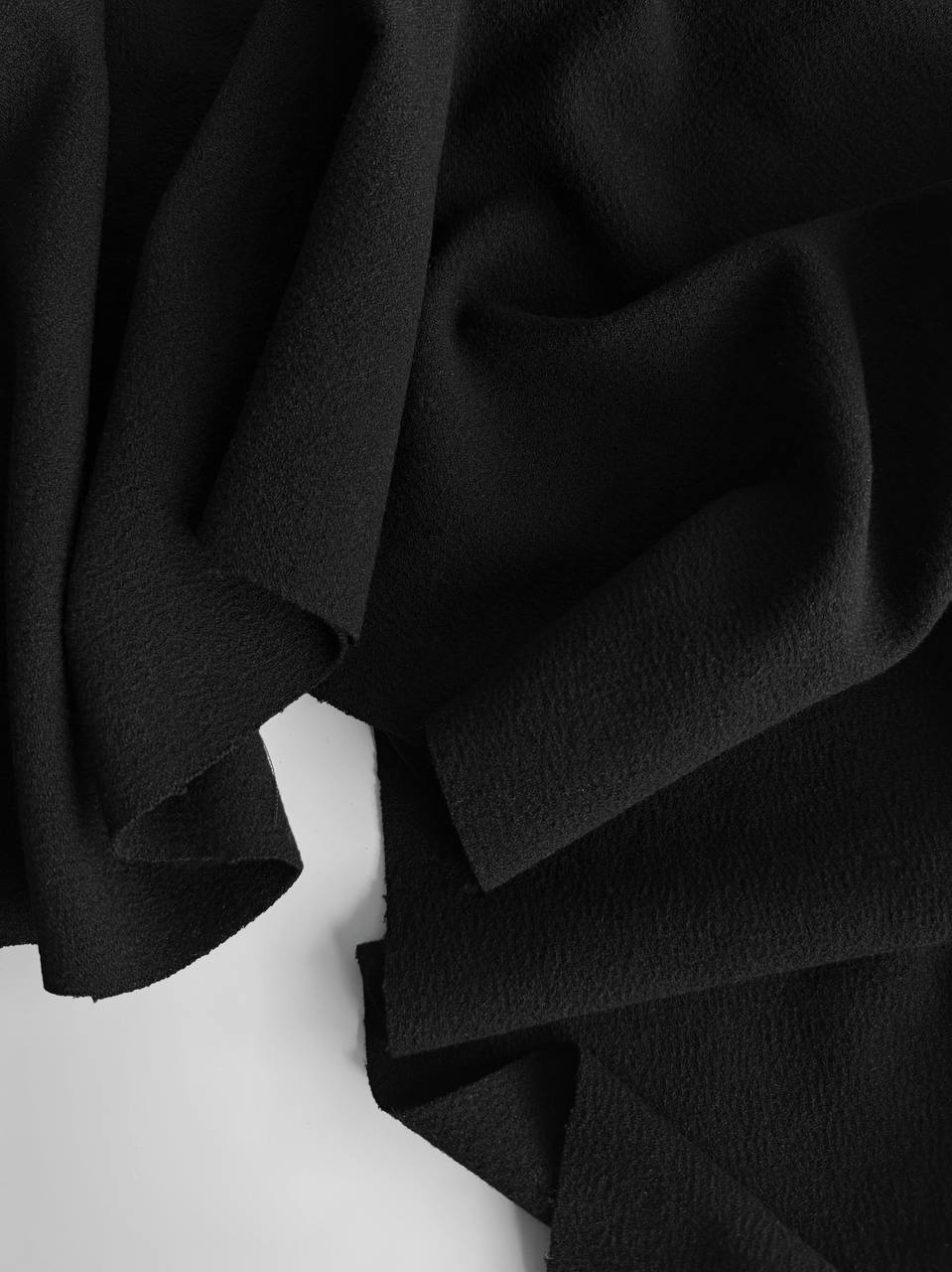 ХАРАКТЕРИСТИКИ: Мягчайший шерстяной трикотаж креп в черном цвете. За счет переплетения нитей создается креповая текстура полотна. Материал очень мягкий, не колется, отлично драпируется, хорошо тянется и быстро восстанавливает первоначальную форму. ЧТО ШЬЁМ: Такой трикотаж отлично подойдет для пошива платьев, костюмов, водолазок, лонгсливов. Также подойдет и для детской одежды. УХОД ЗА ИЗДЕЛИЕМ: • Рекомендуется ручная стирка с жидким моющим средством чтобы изделие как можно дольше сохраняло первоначальный вид Легкий отжим, не выкручиваем • сушим в разложенном виде на горизонтальной поверхности вдали отопительных приборов и прямых солнечных лучей • утюжим в режиме шерсть, предварительно проверив температурный режим утюга или парогенератора на небольшом кусочке