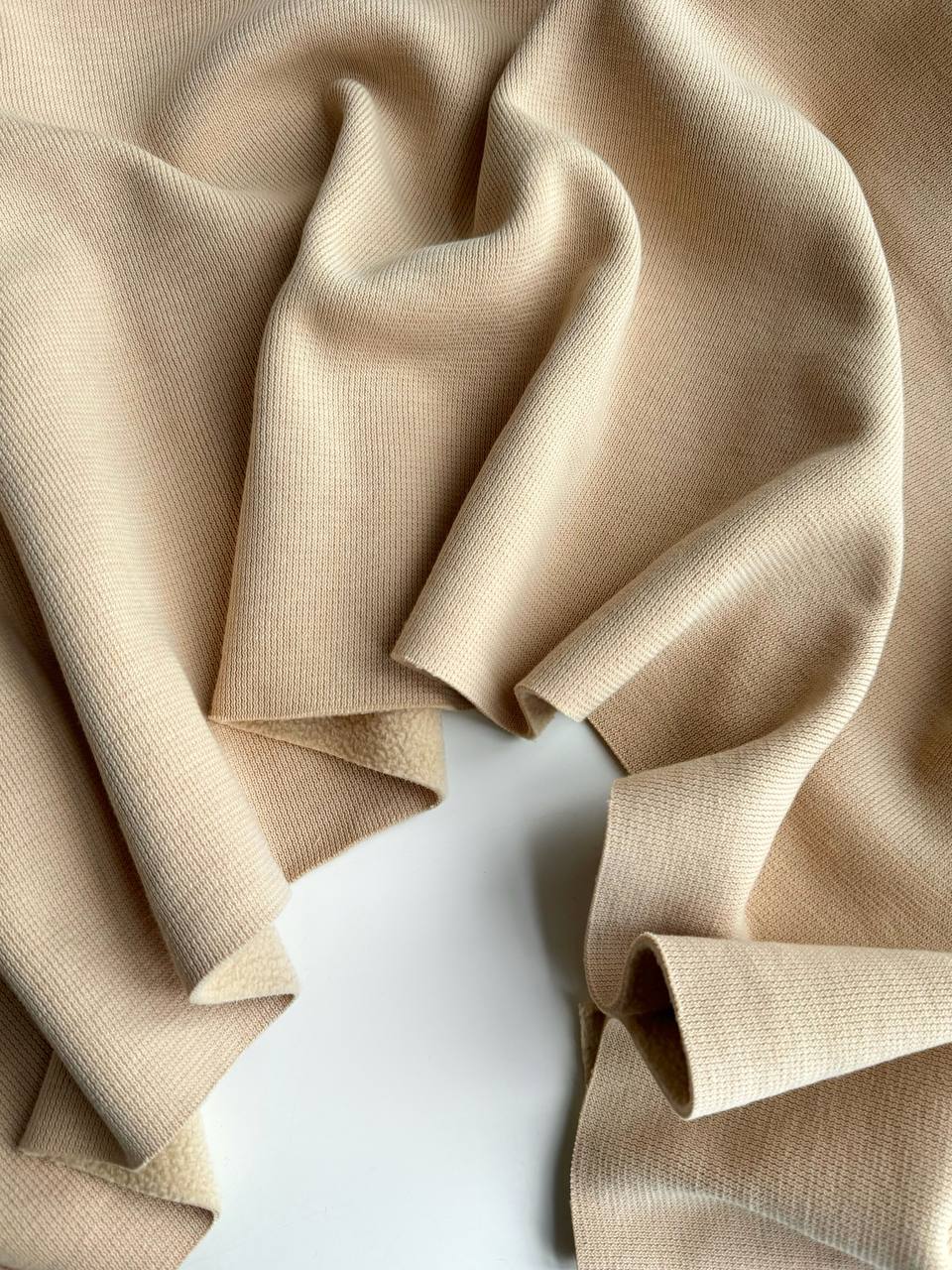 ХАРАКТЕРИСТИКИ: Мягкий трикотаж со смесовым составом Лицевая сторона с рубчиком, изнанка с начесом • теплый • комфортный к телу, не колется • слегка • практически не мнется ЧТО ШЬЁМ: Подходит на теплый осенне-зимний гардероб Можно шить костюмы, худи, платья Лучше выбирать модели объемного силуэта Края среза стабильны, без стрелок Края изделия требуют обработки УХОД ЗА ИЗДЕЛИЕМ: • Рекомендуется ручная или деликатная стирка с жидким моющим средством, чтобы изделие как можно дольше сохраняло первоначальный вид Легкий отжим, не выкручиваем • сушим в разложенном виде на горизонтальной поверхности вдали отопительных приборов и прямых солнечных лучей • утюжим слекга влажное изделие предварительно проверив температурный режим утюга или парогенератора на небольшом кусочке