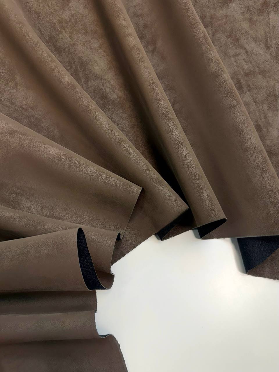 Ткань состоит из двух слоёв: подложки (тканевое вискозное полотно, не синтетика) и полиуретана (верхнее покрытие) Благодаря такому сочетанию эта замша отлично пропускает воздух и комфорта к телу Так как нижний слой тканевый (такой же, как у нашей экокожи) то он очень мягкий, комфортный, можно даже шить без подкладки Имеет визуальную фактуру замши Ткань приятна в руках, слегка тянется ЧТО ШЬЁМ: Верхнюю одежду: тренчи, куртки, бомберы, косухи Одежду второго слоя: пиджаки, платья, сарафаны, юбки, корсеты, брюки и шорты, жилеты Аксессуары: головные уборы, сумки, шопперы Для пошива можно использовать иглы для экокожи, для стачивания универсальные нитки madeira. Изделия можно ставить на подкладку, дублировать, утеплять Кроить можно в разворот ВТО не требуется, но можно его провести паром, или замочить ткань в теплой воде на 15 минут, если потребовалось устранить заломы и для гигиенических целей КАК УХАЖИВАЕМ: • Изделия можно стирать руками или протирать влажной салфеткой (есть специальные для одежды) Также можно сдавать в химчистку • Использовать только деликатные средства, предварительно протестировав на небольшом кусочке. Не использовать агрессивные моющие средства, отбеливатель • Если стирать руками, то сушить в горизонтальном положении, разложив изделие. Также можно сушить на мягких плечиках. Вдали от отопительных приборов и яркого солнца • Утюжить на низких температурах с изнаночной стороны Обязательно проверьте режим своего утюга или парогенератора на небольшом кусочке