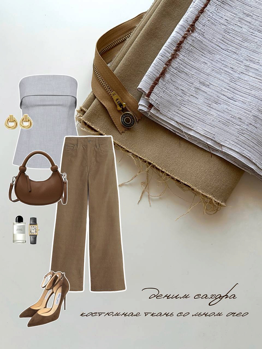 Вискозный трикотаж ilana butter + деним велюровый milky brown