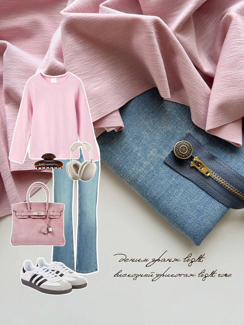 Вискозный трикотаж ilana grass + деним велюровый misty rose