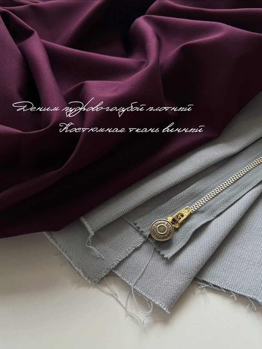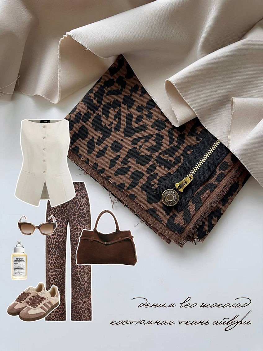 Костюмная ткань вишня в шоколаде + деним лео шоколад