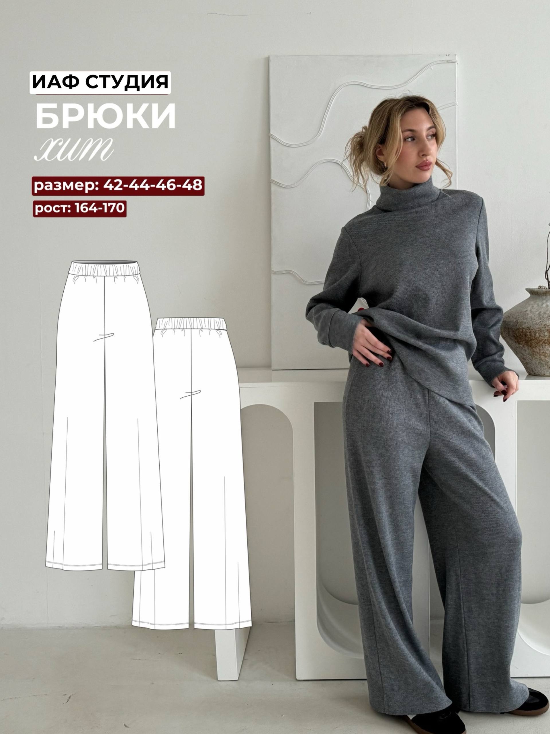 После оплаты заказа в личном кабинете на сайте в разделе выкройки появится выкройка и файлы для скачивания: 1. Выкройка выбранного размера в PDF – формате для печати на принтере (А4) 2. Выкройка выбранного размера в PDF – формате для печати на плоттере 3. Инструкция ( техническое описание брюк, последовательность сборки, технический эскиз) Таблицу измерения изделия, прибавки на свободу облегания, а также подробную информацию по расходу и раскладке изделия можно найти в разделе файлы